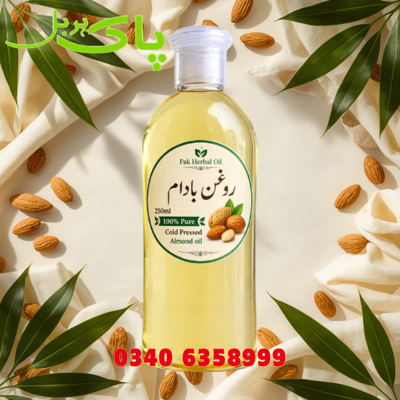 100% pure cold-pressed Almond Oil by Pak Herbal, suitable for edible, hair, and skin use. A natural multi-purpose oil for overall health, strong hair, and glowing skin.